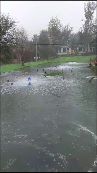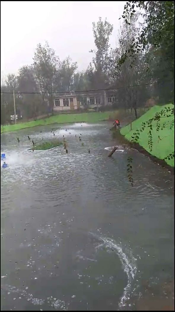 【重點納污坑塘綜合整治項目】雄安新區(qū)安新縣安州鎮(zhèn)二標段13號坑塘一直處在治理中,在經(jīng)過浮萍打撈、曝氣裝置等階段后,日前,該項目正處于噴灑藥劑階段